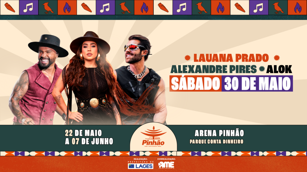A 36ª edição da Festa Nacional do Pinhão começa no dia 22 de maio de 2026, em Lages, com programação no Recanto do Pinhão Aracy Paim, no Calçadão da Praça João Costa. A abertura oficial será marcada pelo show de Renato Borghetti, ícone da música instrumental gaúcha.