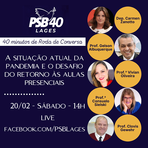 Em Lages, o PSB tomou também iniciativa de discutir o assunto, e promove neste sábado, 20/02, às 14h, em sua página do Facebook a sétima live do projeto “40 minutos de Roda de Conversa”.