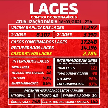 Por outro lado, o Boletim coronavírus de Lages tem um quadro desolador. Por isso, a necessidade de seguir apelando para que todos sigam as orientações e se cuidem.