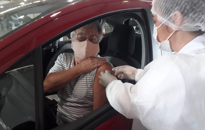 Neste sábado, 27, muitos idosos na faixa etária dos 70 anos, ou mais, foram ao Parque Conta Dinheiro para receber a primeira dose da vacina CoronaVac, do Instituto Butantan, e outros, na faixa dos 80, a segunda dose.