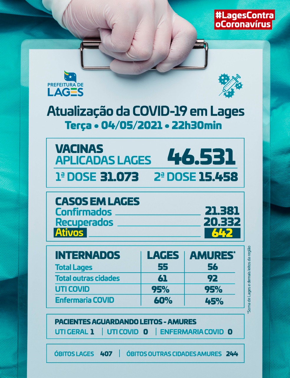 Com a chegada de mais 7.545 doses da AstraZeneca no fim da tarde da terça-feira (4), novo recorde em Lages, foi ampliada a vacinação para pessoas com comorbidades.