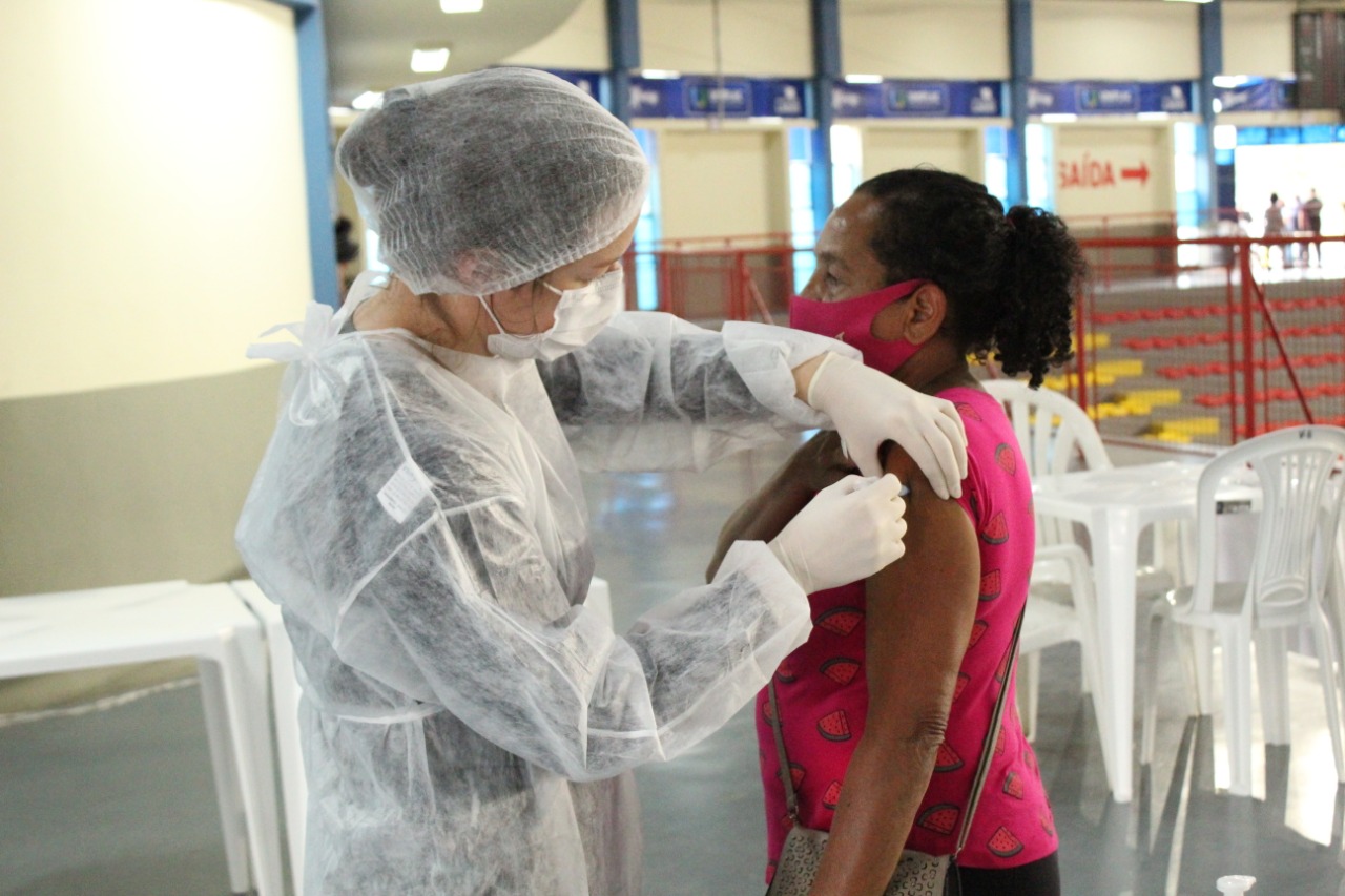 Além disso continua a aplicação das 2ª doses no Ginásio Jones Minosso e Drive Thru no parque Conta Dinheiro.
