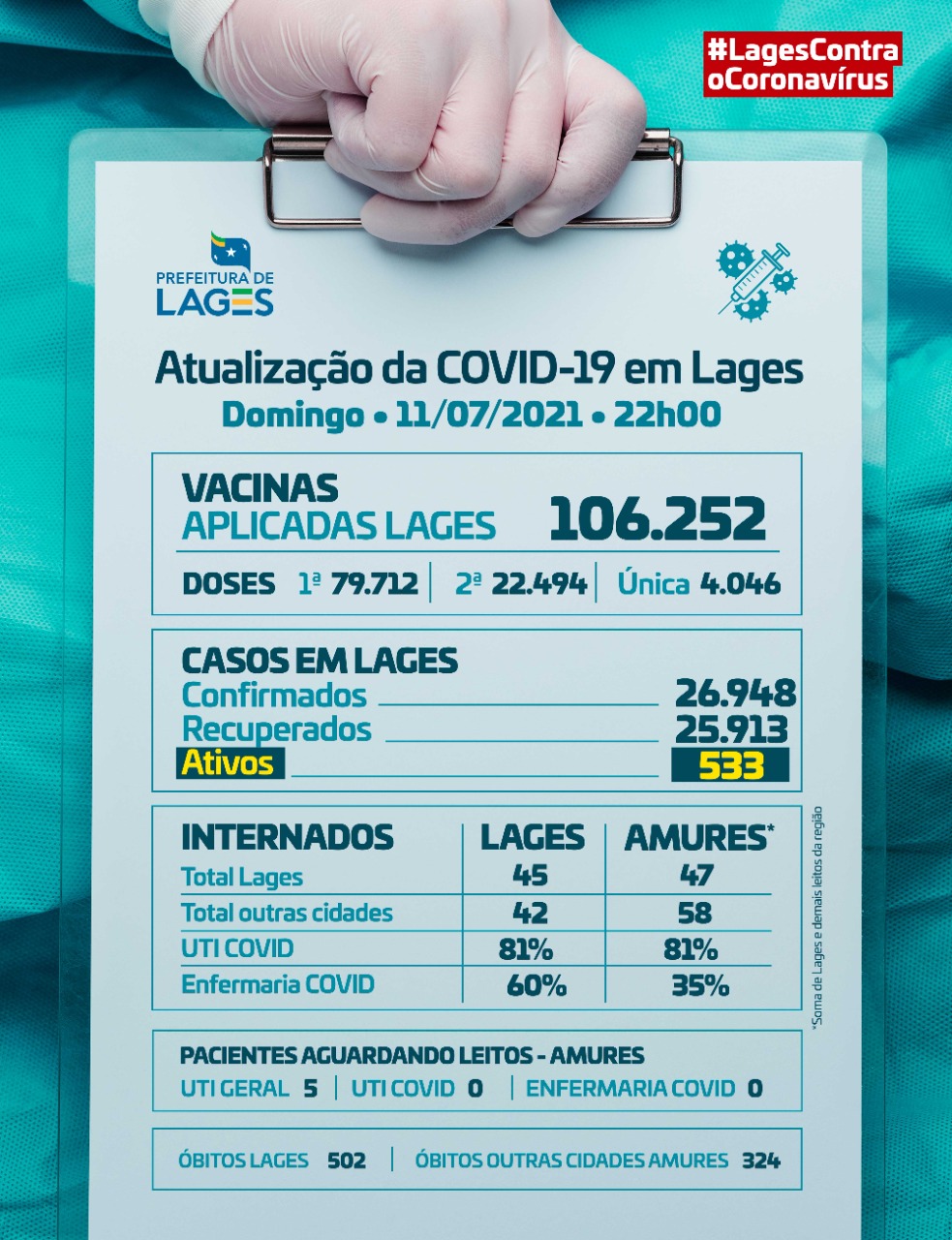 Boletim de Lages atualizado (22h – domingo 11/07)
