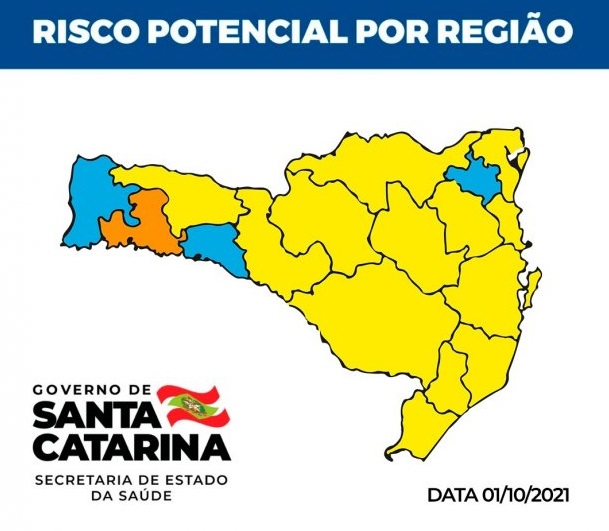 As regiões em risco alto são Alto Vale do Itajaí, Alto Vale do Rio do Peixe, Carbonífera, Extremo Sul, Foz do Rio Itajaí, Grande Florianópolis, Laguna, Médio Vale do Itajaí, Meio Oeste, Nordeste, Planalto Norte, Serra e Xanxerê.
