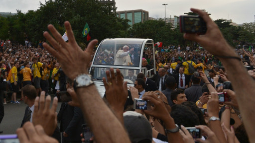 No trajeto, a bordo do papamóvel no Rio foi acompanhado por uma multidão empolgada.