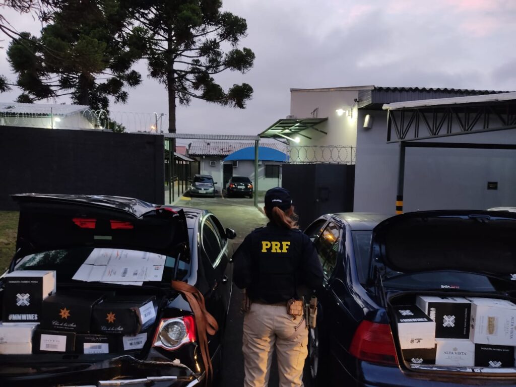 Na sequência, ainda durante a fiscalização, um VW/Bora de Barracão/PR foi abordado pelos PRFs e durante vistoria, os policiais encontraram mais 317 garrafas de vinho no porta-malas e banco traseiro do automóvel.