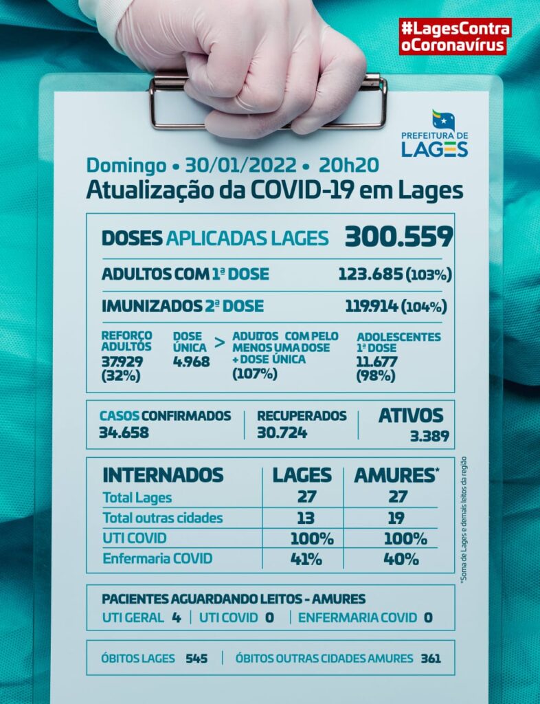 Os números do Boletim Covid Paulo Chagas Saúde 31 de janeiro de 202231 de janeiro de 2022 Share this on WhatsAppShare thisFacebookXEmailLinkedInWhatsAppBoletim de Lages atualizado às 20h20 deste domingo. Leitos UTI permanecem com 100% de ocupação.Compartilhe isso: Imprimir(abre em nova janela) Imprimir Envie um link por e-mail para um amigo(abre em nova janela) E-mail Tweet Compartilhar no WhatsApp(abre em nova janela) WhatsApp Share this on WhatsApp Publicado por Paulo Chagas Ver todos os posts por Paulo Chagas Published 31 de janeiro de 202231 de janeiro de 2022