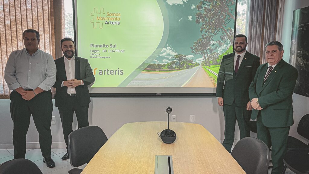 O grupo formado pelos parlamentares Lucas Neves (Podemos), Marcius Machado (PL) e Mário Motta (PSD) se reuniu com o diretor-superintendente da Autopista Planalto Sul, Cesar Sass.