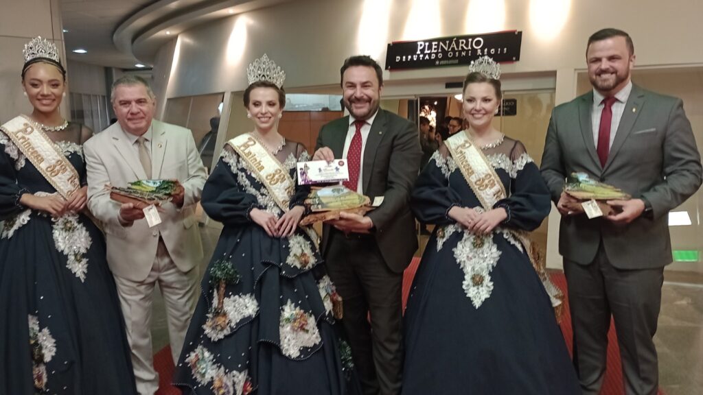 Por outro lado, o prefeito interino Juliano Polese, superintendente da Fundação Cultural Gilberto Ronconi, rainha, Mariane de Carvalho Vialli, 1ª princesa, Ana Maira Scos da Rosa de Olivieira, e 2ª princesa, Maria Getrudes Brusius, gaiteiro Paulinho Guazzelli e violeiro Victor Colombo, convidaram e animaram os presentes no plenário, e claro, fizerem o convite oficial para a Festa e Recanto do Pinhão.