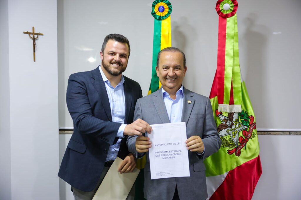 Nesta segunda-feira (24, o governador de Santa Catarina, Jorginho Mello (PL), recebeu em reunião o deputado Lucas Neves (Podemos) no Centro Administrativo, em Florianópolis. Durante a audiência, o parlamentar entregou o anteprojeto para estadualizar as Escolas Cívico-Militares.