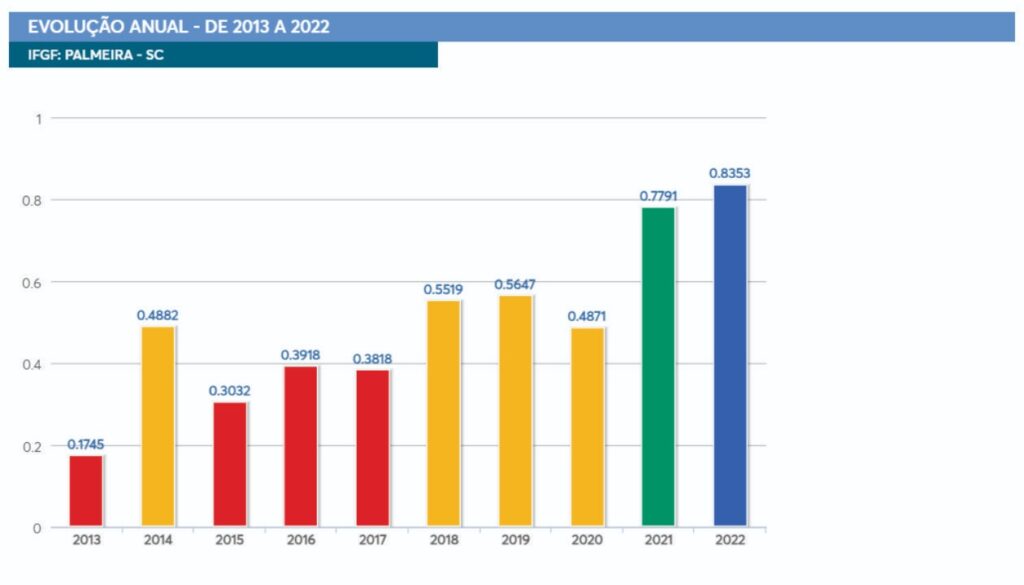 Comparado ao levantamento de 2022 (ano-base 2021), quando Palmeira havia obtido um indicador de Boa Gestão, com nota 0,7791, o município demonstrou uma evolução significativa em sua administração.