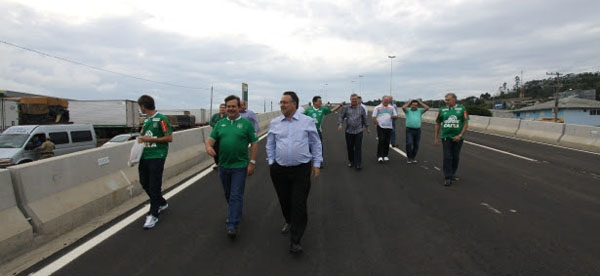 Ainda em Chapecó, neste domingo, bem antes do jogo, o governador Raimundo Colombo visitou a obra de duplicação da BR-480 – acesso que liga Chapecó à BR-282, que deverá ser inaugurada até o final deste mês.