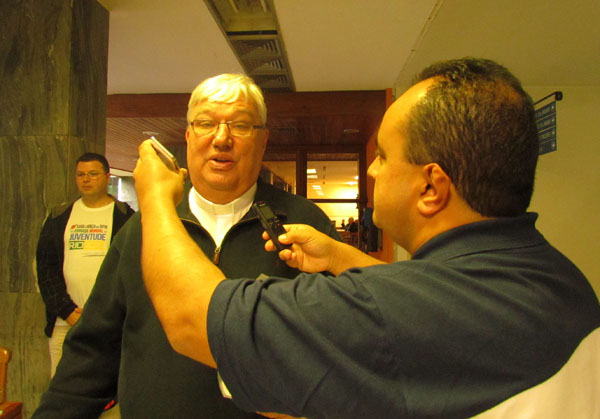 Os colegas de comunicação do Rádio e TV, Daniel e Vicktor estão sofrendo para cobrir a visita do Papa no Brasil, mas estão adorando o trabalho. Certamente uma experiência única.
