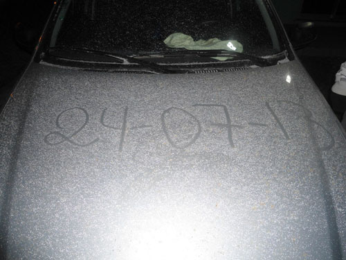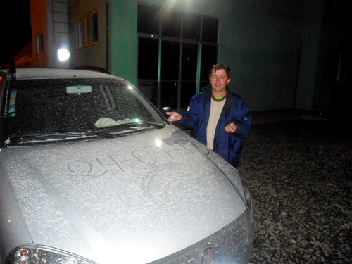 Ao amanhecer os campos do Parque Eólico e em alguns pontos do centro nevou por dez minutos, tingindo novamente os campos da Serra Catarinense de branco.