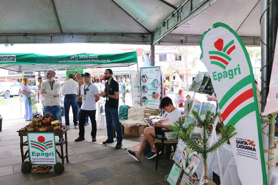 No estande da Epagri, em parceria com o viveiro florestal Duffatto, uma exposição de mudas de araucária enxertada, um experimento pioneiro na Serra Catarinense, que promete fornecer pinheiros com produção precoce de pinhão e melhor qualidade.