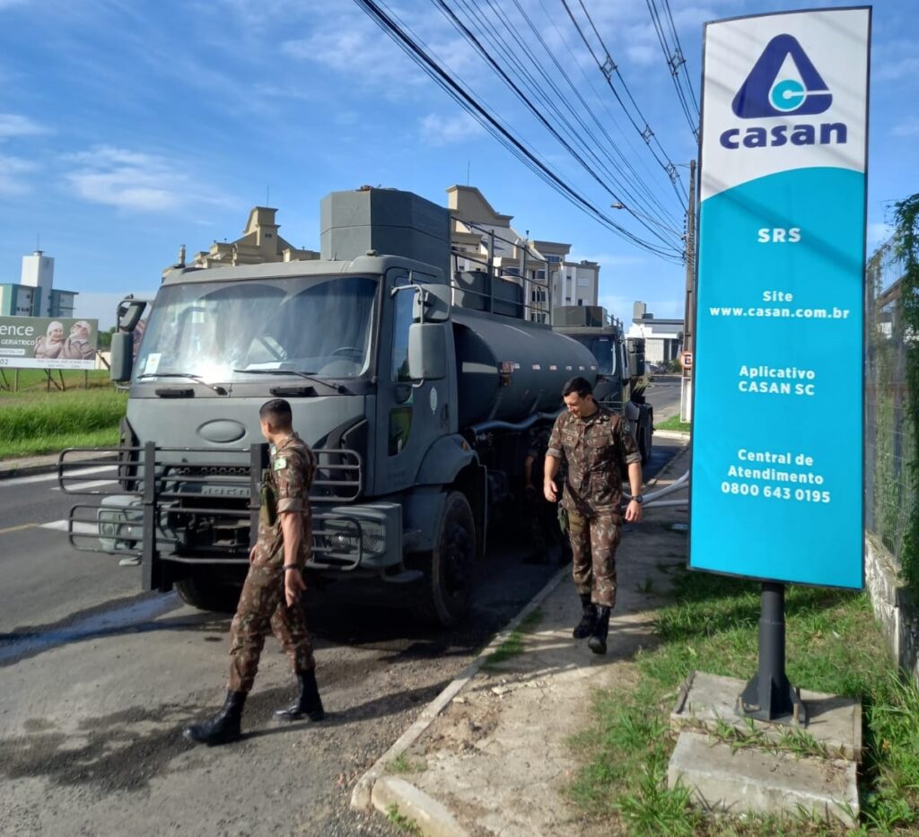 Ao todo, foram enchidos pelo menos nove caminhões-pipa do 28º Grupo de Artilharia de Campanha do Exército em Criciúma na manhã desta quarta-feira, 8. A doação servirá para suprir necessidades emergenciais em locais onde o tratamento ainda não está totalmente normalizado.
