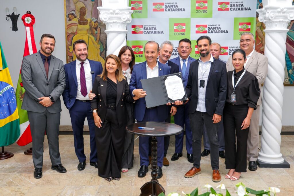 A assinatura foi realizada nesta terça-feira, 18, em Florianópolis, com a presença da prefeita Lucia Ortiz, do secretário de Portos, Aeroportos e Ferrovias (SPAF), Beto Martins, e lideranças regionais.
