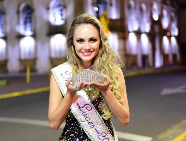 Andréia Canello, que já foi rainha da Festa do Pinhão, eleita Miss Lages 2014, em evento no Caça e Tiro, na noite deste sábado (17).