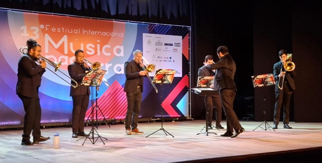 A programação da noite seguiu com apresentações de professores do festival, que interpretaram obras de câmara em diferentes formações: um Quarteto de Madeiras, um Quinteto de Sopros e, encerrando a noite, um grupo com trombone solo e acompanhamento de quarteto de trombones, sob a regência do maestro Lucas Araújo.