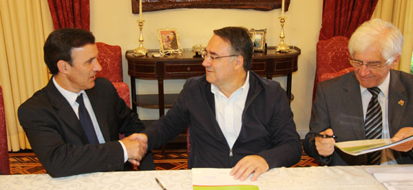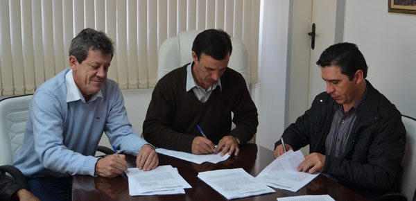 O secretário de Desenvolvimento Regional, João Alberto Duarte, o diretor geral da SDR, Juarez Mattos, e o prefeito Ivonir Fernandes assinaram convênios que viabilizarão a compra de uma ambulância, a recuperação de estradas vicinais e a conclusão da casa de remates do parque de exposições Euclides Granzotto.