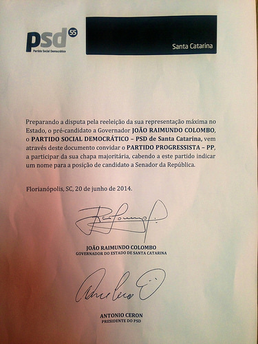 Esta, sem dúvida, é a mais importante novidade política de Santa Catarina, no momento. E como pode se notar, cabe ao PP indicar o nome à candidatura ao senado.