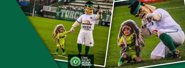 O mascote da Chapecoense simbolizando um guerreiro índio, em todos os jogos anima a torcida.