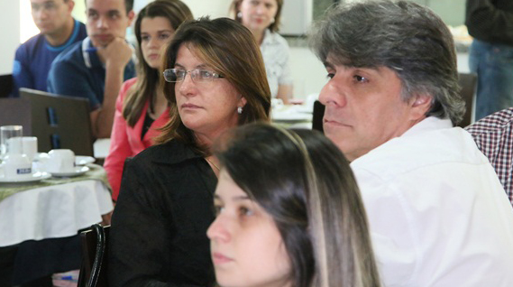 O Álvaro é esse moço, junto com a Carmen Zanotto. Ambos estavam no evento da Fiesc Regional, na manhã desta terça. (Foto: Zé Rabelo)