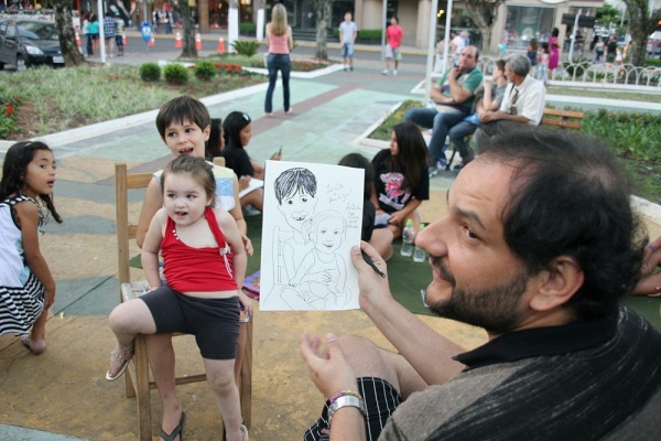 Esteve em Lages oferecendo uma oficina de desenho gratuita às crianças que passavam pela praça da Catedral.