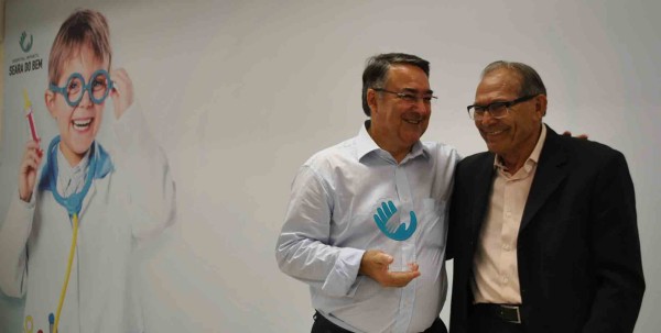 Colombo recebeu do presidente do hospital, Wilson Ribeiro dos Santos, um troféu em reconhecimento à atenção dispensada à saúde das crianças que encontram no hospital infantil de Lages o suporte médico necessário.