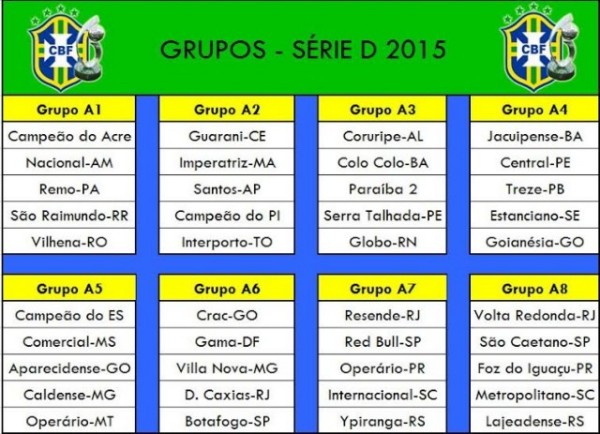 Definidos todos os times que vão participar da Série D do Campeonato Brasileiro de Futebol. Ao todo são 40 clubes. Dois deles de Santa Catarina: Internacional de Lages e Metropolitano, de Blumenau que ficou no Grupo A8.