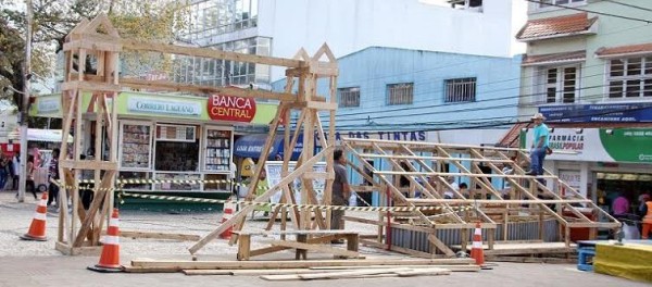 Assim como no Parque Conta Dinheiro, a comunidade de Lages já passa a conviver com o movimento da montagem da estrutura do Recanto do Pinhão, no Calçadão da Praça João Costa.
