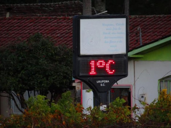 O amanhecer desta segunda-feira, dia 15, foi gelado em Urupema, na Serra Catarinense. No Morro das Torres a temperatura mínima registrada, segundo medições da Epagri/Ciram, foi de -1,4°C com sensação térmica de -20°C.