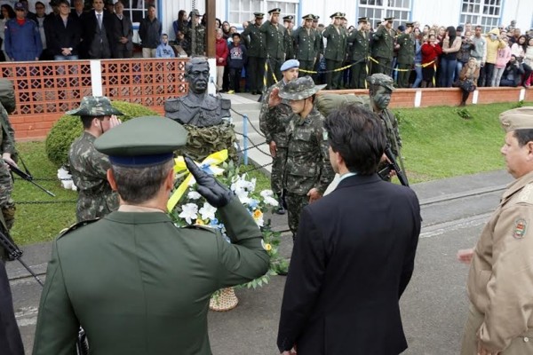 Na ocasião depositaram uma coroa de flores junto ao busto do Patrono do Exército, Duque de Caxias. Vale o registro. Parabéns aos soldados!