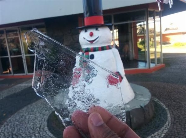 Com um frio intenso a cidade de São Joaquim registrou a temperatura de -3.6°C segundo o Climaterra, o que proporcionou um lindo espetáculo da geada que cobriu os campos e paisagem com uma espessa camada de gelo.