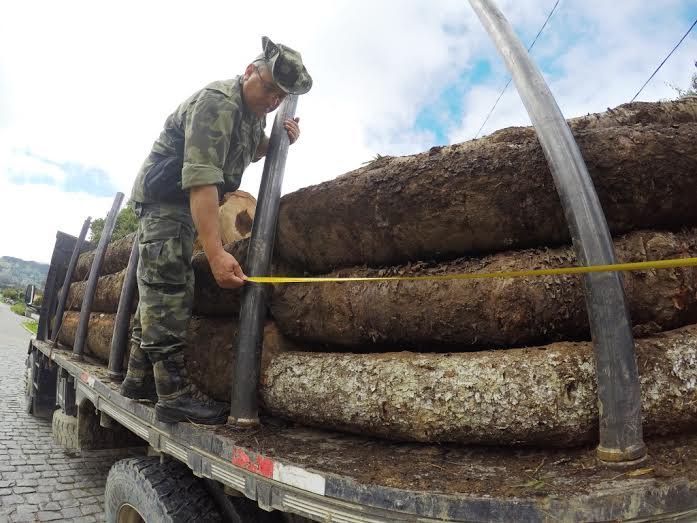 Foram apreendidos 10 metros cúbicos de produto florestal nativo da espécie pinheiro brasileiro sem a autorização dos órgãos competentes.