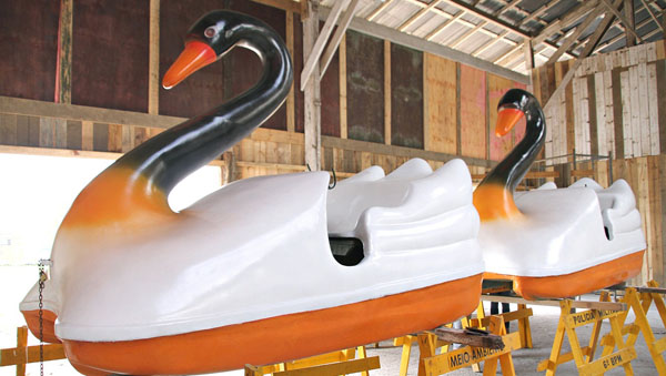 Depois de muito tempo ausentes para reforma, os brinquedos (cisnes) vão ser recolocados de volta no Tanque, no Parque Jonas Ramos, em Lages, para os passeios a base do pedal.