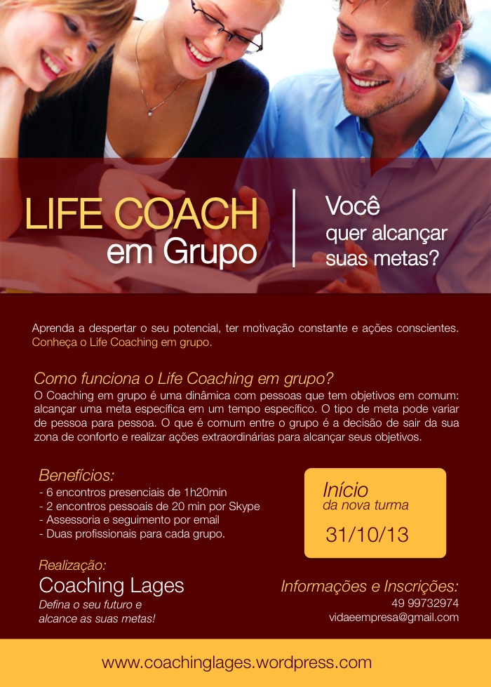 O “Life Coaching” em grupo, faz uma dinâmica com pessoas que tem objetivos em comum: alcançar uma meta específica em um tempo específico. O tipo da meta pode variar de pessoa para pessoa.