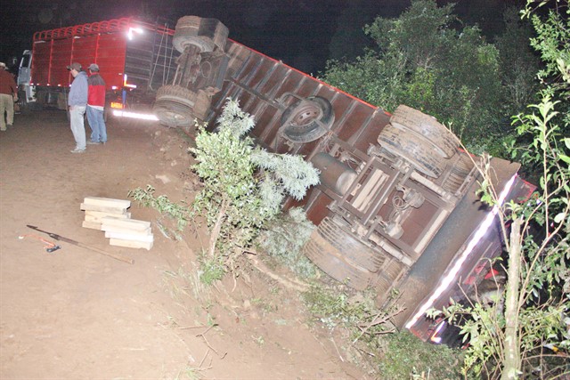 Nesta última segunda-feira, 24, em São Joaquim, o registro de um acidente inusitado, com o tombamento de um caminhão de transporte de bovinos.