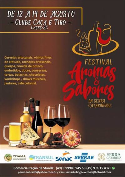 De 12 a 14 de agosto o clube Caça e Tiro em Lages, será palco do 1º Festival de Aromas e Sabores.