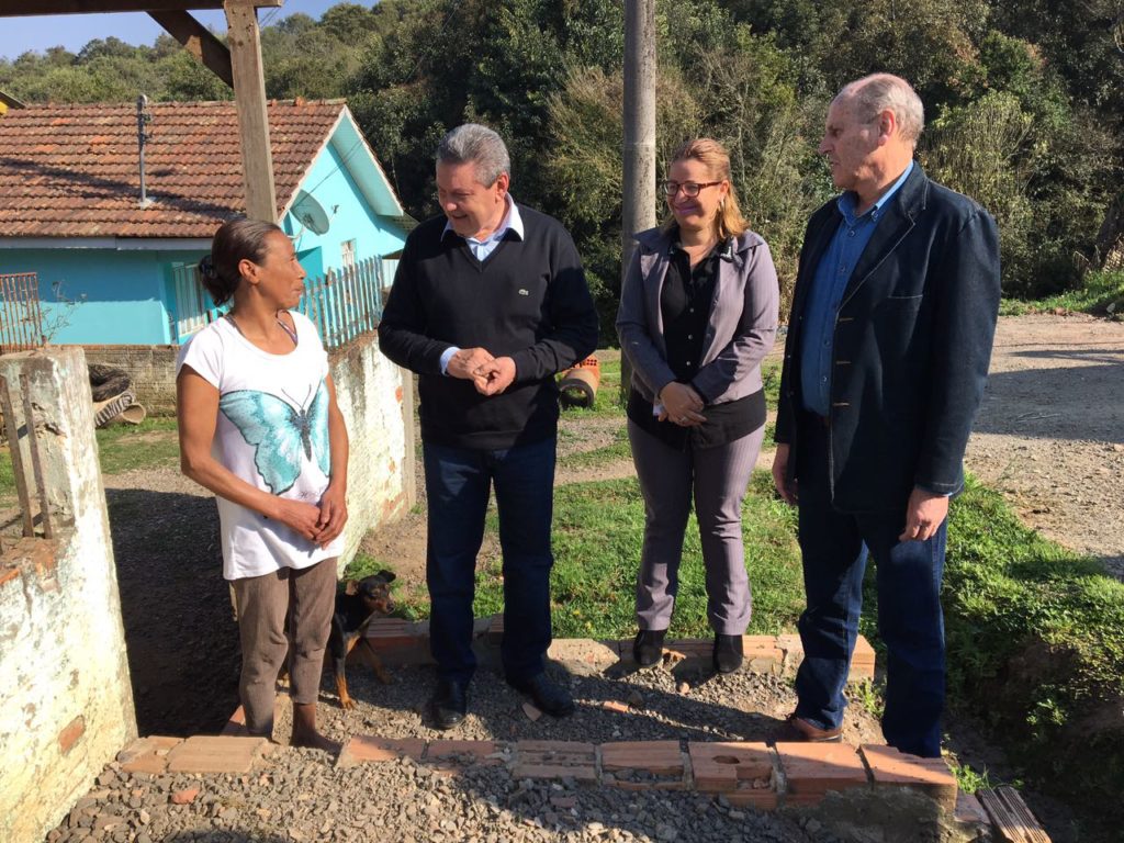 O prefeito Antonio Ceron, acompanhado do secretário Jurandi Agostini, esteve na rua Esmeralda Muniz, para fazer a entrega