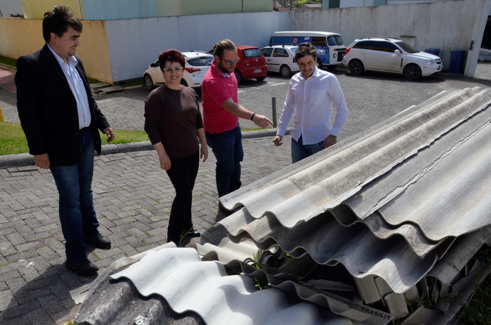 Na tarde desta segunda-feira (16), a presidente da Câmara de Lages, Aida Hoffer (PSD), entregou ao secretário Samuel Ramos, várias telhas que foram substituídas na reforma do prédio do Legislativo Lageano.