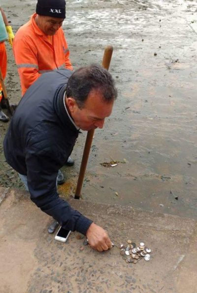 Com o prosseguimento da limpeza nesta terça-feira (24), o secretário Tchá Tchá mostrou uma “sujeira” curiosa, ou seja, um punhado de moedas, e até mesmo um celular.