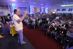 Caravanas de todas as partes de Santa Catarina ajudaram a colorir com faixas, camisetas e até com bandas de música o auditório onde ocorreu a convenção durante toda a manhã.