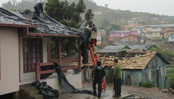 A cena era devastadora. Mais de 50 casas foram destelhadas e a população se reuniu para ajudar uns aos outros no trabalho de cobrir com lonas os telhados das casas.