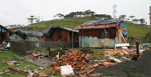Arvores foram decepadas, pinheiros foram arrancados, postes foram quebrados deixando a cidade sem energia elétrica.