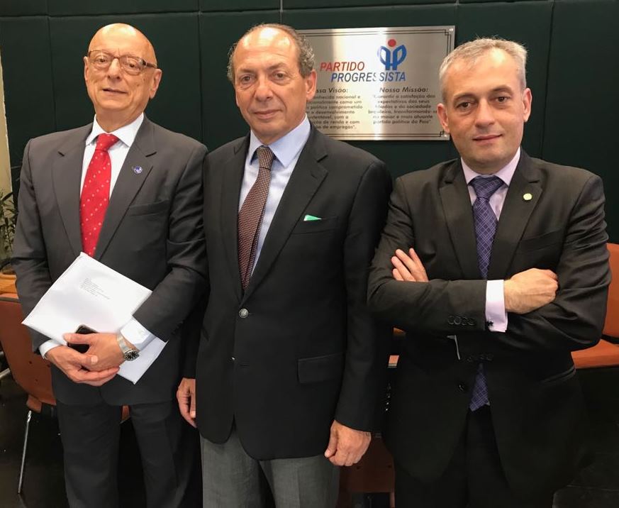 Vice-presidente da ADI-SC, Adriano Kalil, representando todas as organizações, ladeado pelos deputados Esperidião Amin (PP) e João Paulo Kleinubing (PSD).