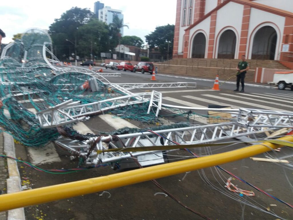 Em Santa Catarina, a cidade de Chapecó, por exemplo, sofreu. Toda a estrutura montada para as comemorações do Natal e do Fim de Ano, no Centro da Cidade, caiu.