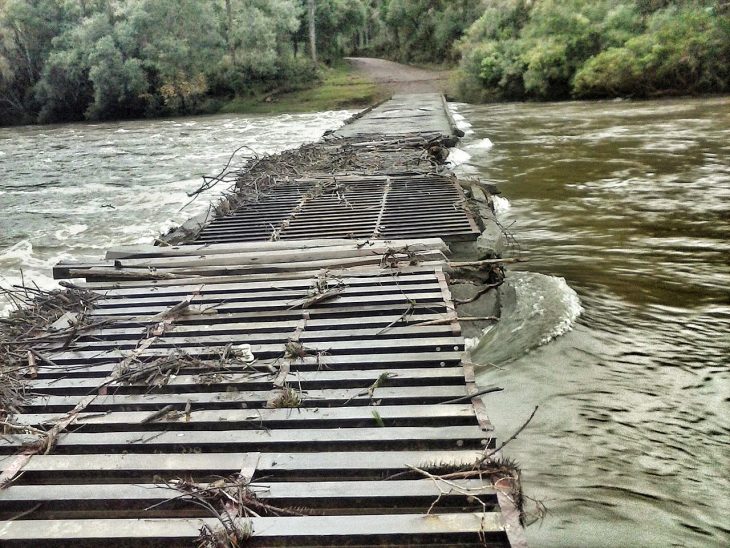 Em tempos de fortes chuvas e depois que as águas baixam, a ponte que já é antiga, construída com trilhos de ferro com a ajuda de moradores locais precisa de reparos. A comunidade se une a faz a manutenção do jeito que dá.