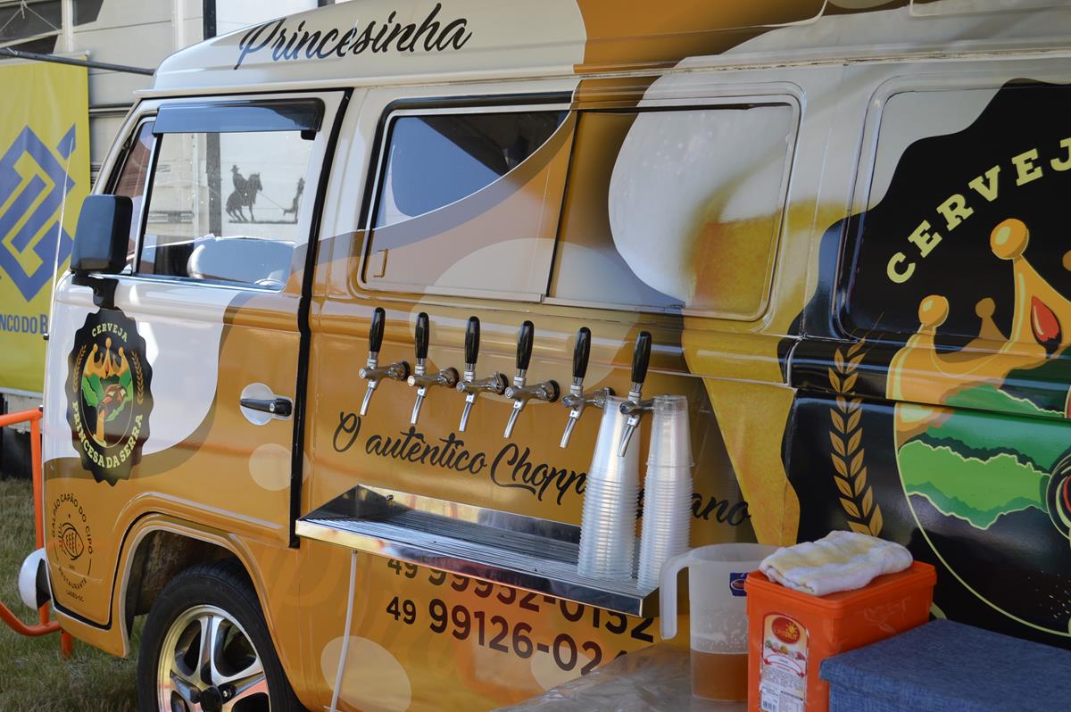 Gostei tanto da criatividade do pessoal do Galpão Capão do Cipó, de Lages, que decidi registrar o invento, durante a Expofeira, em Campo Belo do Sul. Pois, eles adaptaram uma Kombi, num Beer Truck. A ideia não é nova, mas, em Lages, se não me engano, foi a primeira do gênero.