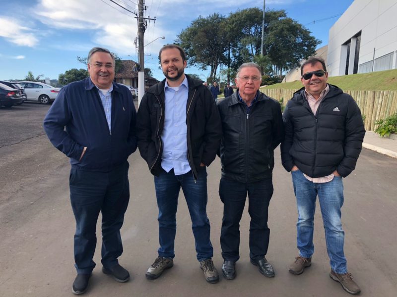 Raimundo Colombo, Juliano Polese, Osvaldo Uncini e Niltinho. Lageanos em Chapecó